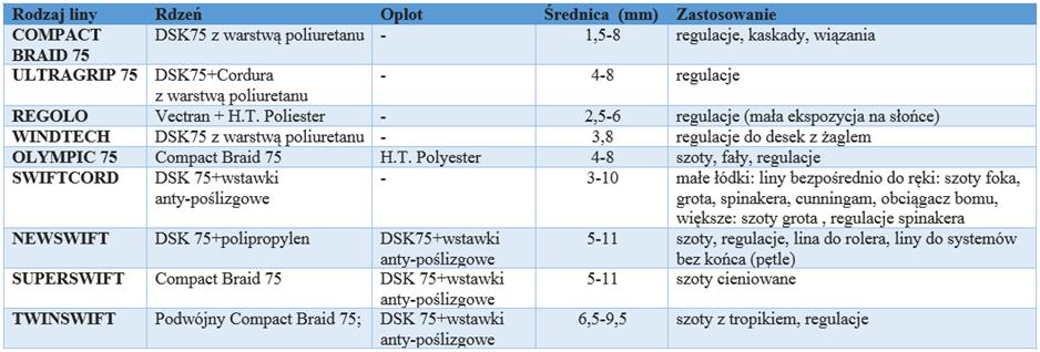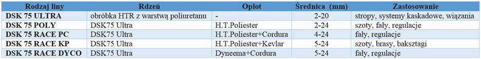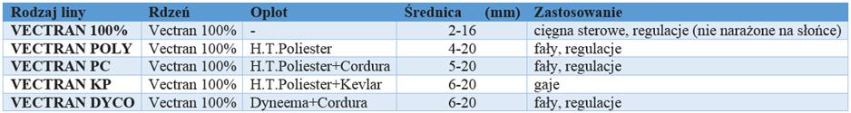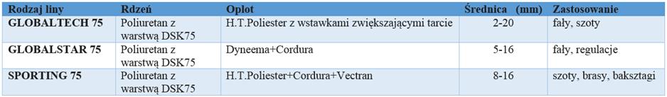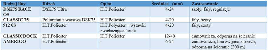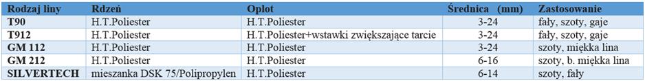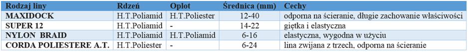 Liny te gwarantują wysoką wytrzymałość roboczą, niską rozciągliwość i dużą odporność na ścieranie.