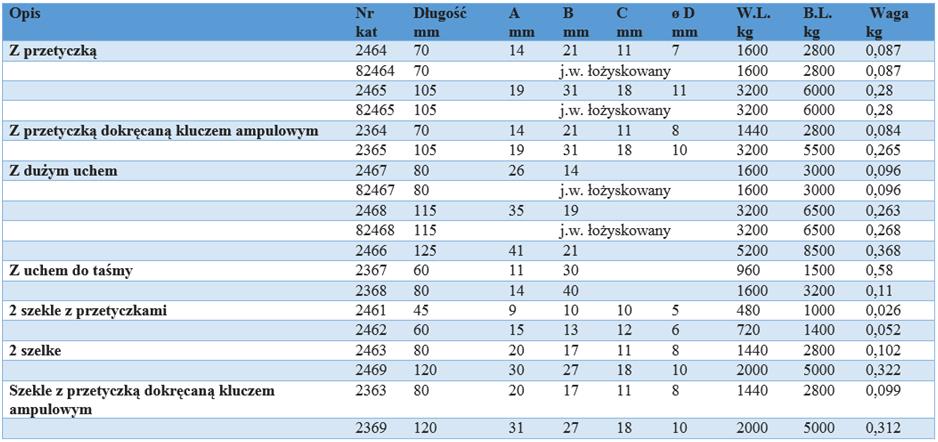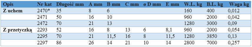 dostępne z obrotowym oczkiem (dużym lub małym) lub obrotową szeklą