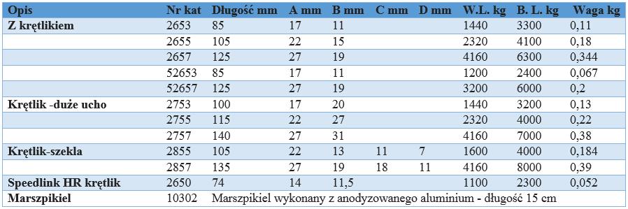 Nowy model snapszekli do otwierania marszpiklem SPEEDLINK (nr kat 2650). Jej kształt i konstrukcja dają najlepszy stosunek wytrzymałości do masy własnej na rynku. Bardzo lekko otwiera się pod obciążeniem ręcznie lub przy pomocy marszpikla. Zaprojektowana tak aby nie uszkodzić pracującej liny.