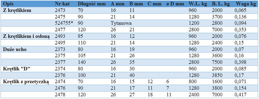 dostępne z obrotowym oczkiem (dużym lub małym) lub bez krętlika